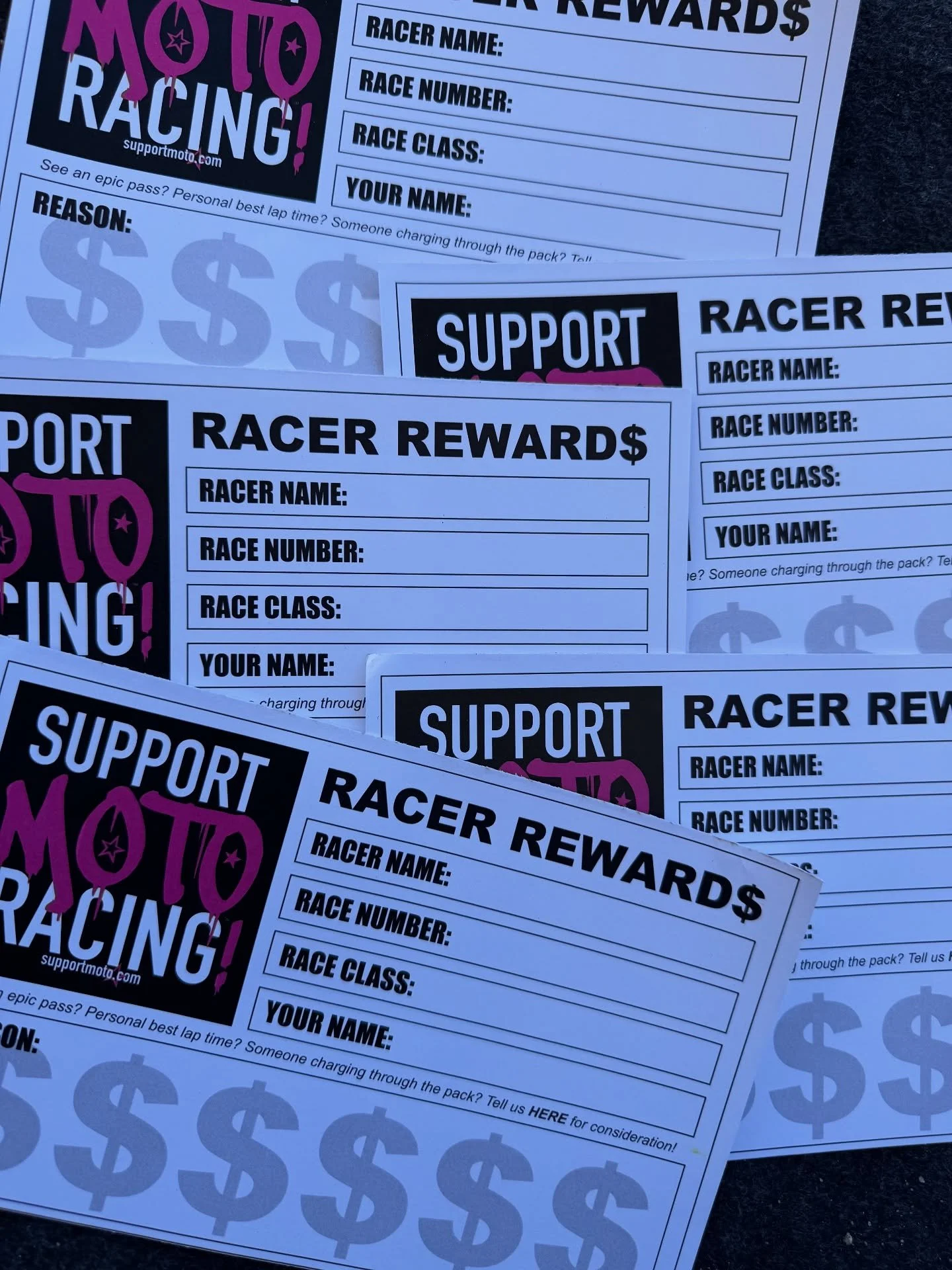 RACER REWARD$ - our at the track team rewards racers for their on-track accomplishments on race day!