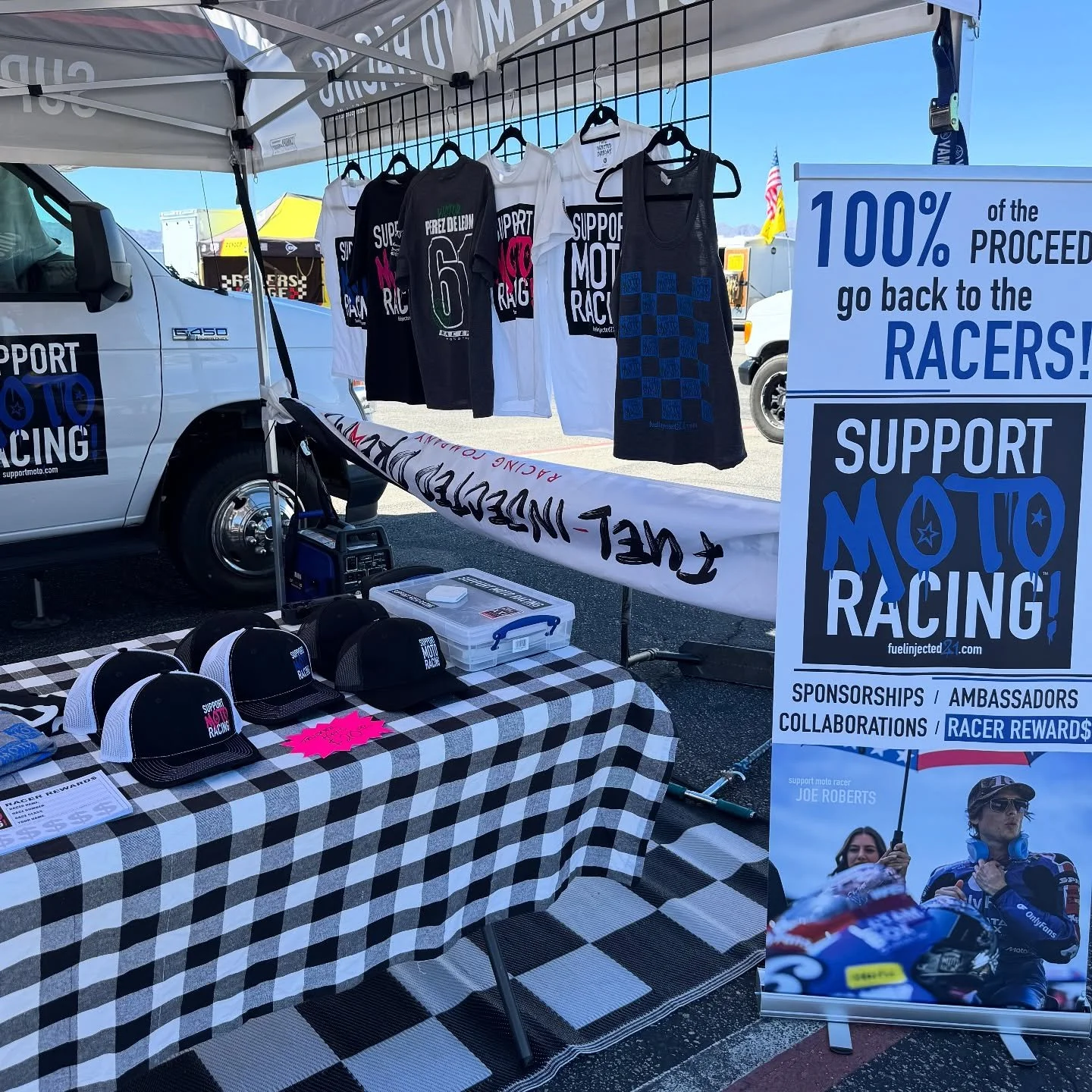 100% of THE proceeds from all SUPPORT MOTO RACING merch sales go directly to RACERS