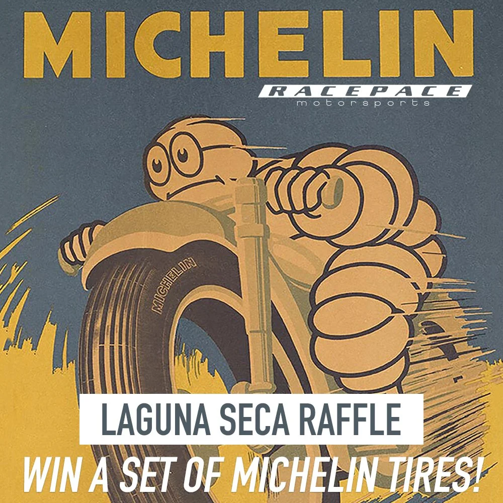 Collaborative raffle with Race Pace Motorsports/Michelin on vendor row at MotoAmerica, Laguna Seca 2025.